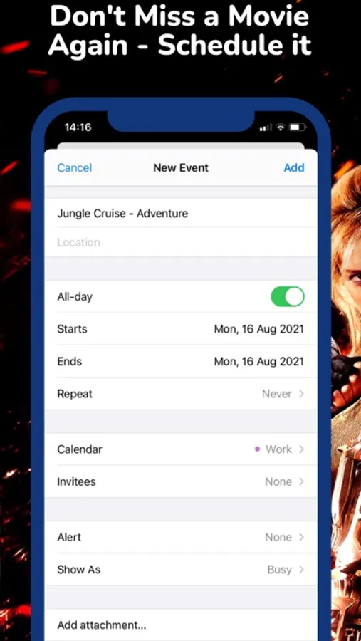 • Add a Movies Event to your calendar