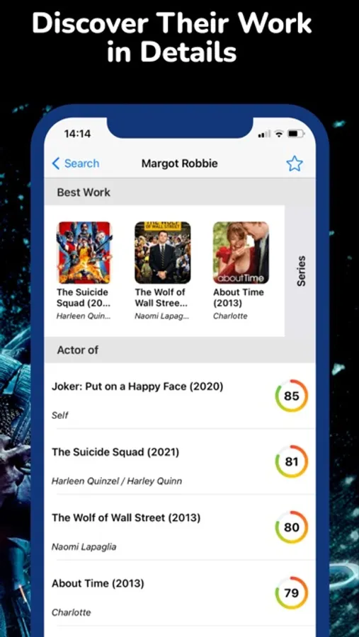 • Find Actors and their work in details.