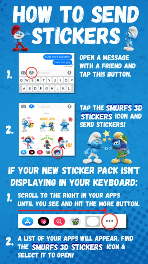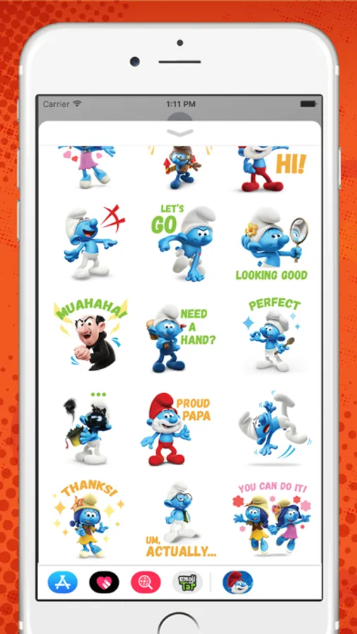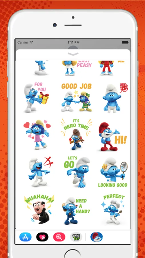 The Smurfs are looking better than ever in this this snazzy, 3D sticker pack. All of your favorite Smurf characters (and some new friends!) are ready to add some serious hype to your mobile messages. Pack includes 24 static stickers.
