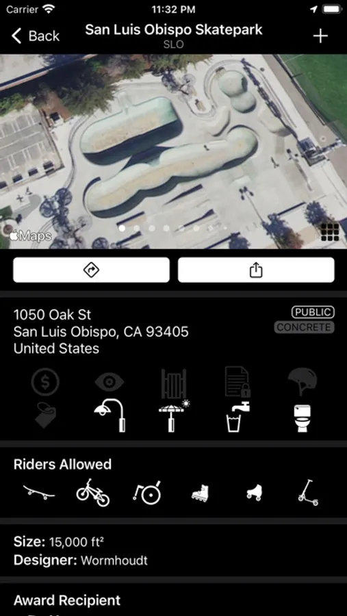 Skatepark rules at each location, park status updates, reported damages and repair requests are all available and can be submitted through the app