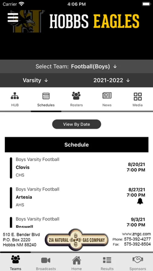 - Supporters: Special Thanks to local boosters and supporters of Hobbs with a directory including website and in-app calling.