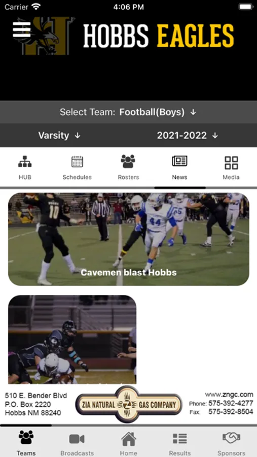 Fans of Hobbs Athletics can now stay up to date around the clock from the convenience of their iOS device. Can’t make it to the game? Watch the LIVE broadcast. Need to know the score of last night’s game? Use the app to find breaking news, rosters, upcoming games and much more.