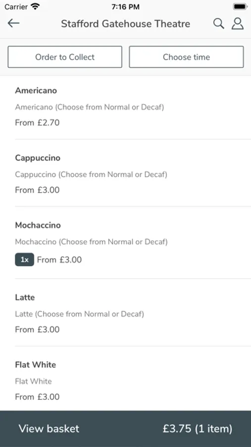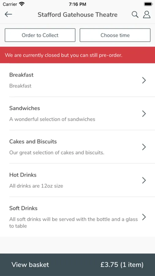 This app allows customers to pre-order their favourite food and drinks directly to their table and to pre-order their interval drinks to a collection point.