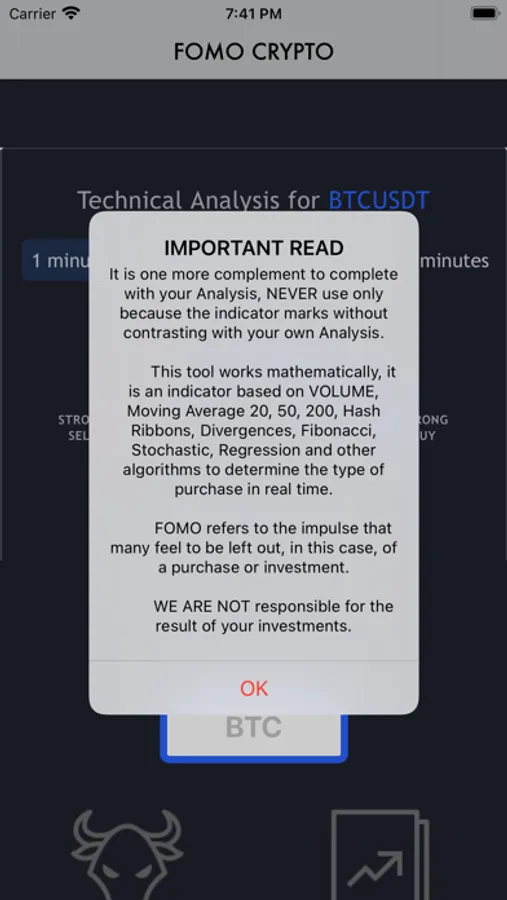 This tool works mathematically, it is an indicator based on VOLUME, Moving Average 20, 50, 200, Hash Ribbons, Divergences, Fibonacci, Stochastic, Regression and other algorithms to determine the type of purchase in real time.
