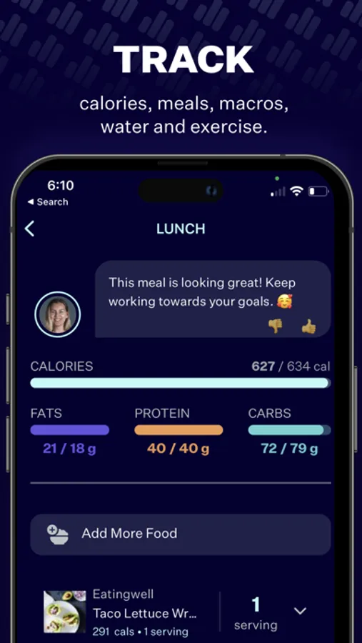 - Daily meal reviews - your virtual coach reviews what you ate and gives you feedback every day