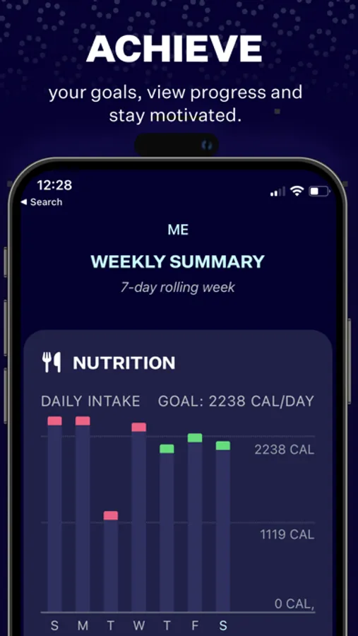 - Personal weight loss/gain program with weekly check-ins and milestone tracking