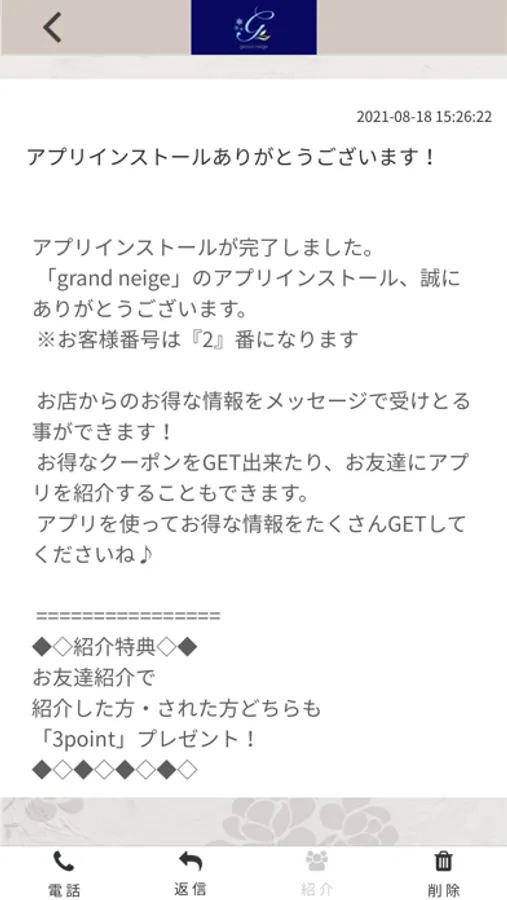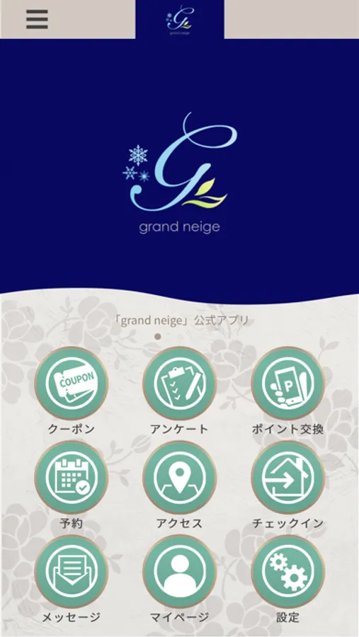 このアプリでは、grandneigeの最新情報の受け取りや便利な機能を使う事ができます。