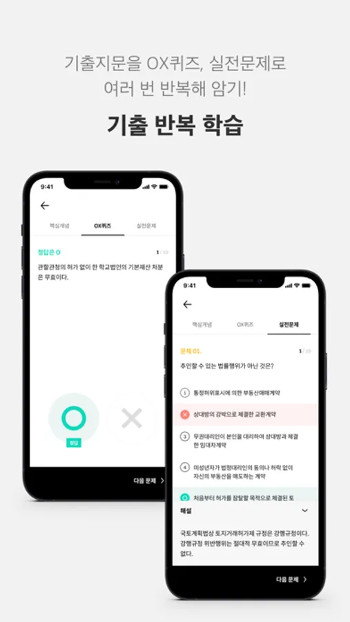 2,000개 이상의 기출 지문을 OX문제, 실전문제로 최대한 반복하고 암기할 수 있어요.