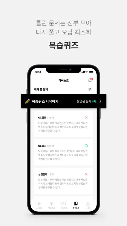 학습한 문제는 물론, 틀린 문제만 모아서 다시 풀어보고 오답을 최소화할 수 있어요.