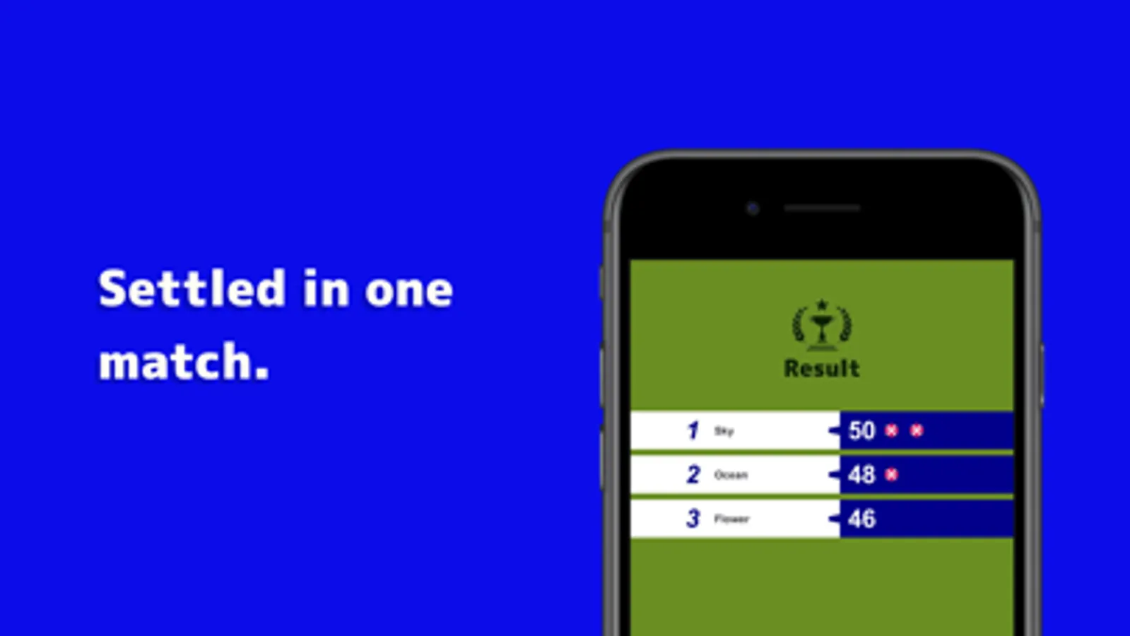 In this application, the game is decided by "one game only" instead of the official game rule of three games with a total score, so that the game can be easily settled in a short time. The game can be enjoyed even by beginners.