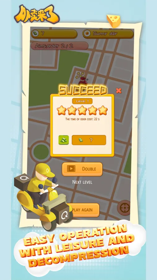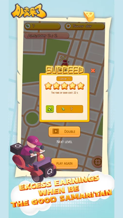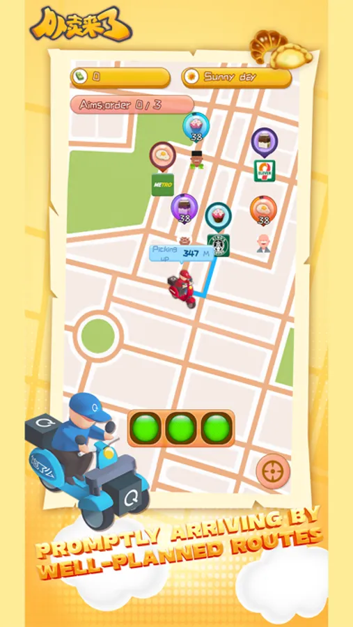 Different weather and scene will affect the speed of food delivery. When the weather is clear, the speed of food delivery is normal. When rain or snow weather, will reduce the speed, to ensure safe driving. The delivery boy will also encounter various emergencies on the way to deliver food, testing his ability to react on the spot.
