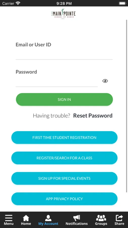 The Main Pointe School of Dance app allows you to manage your account with ease and register for classes. You'll also receive important notification about class changes, closings, registration openings, special announcements, and upcoming events.