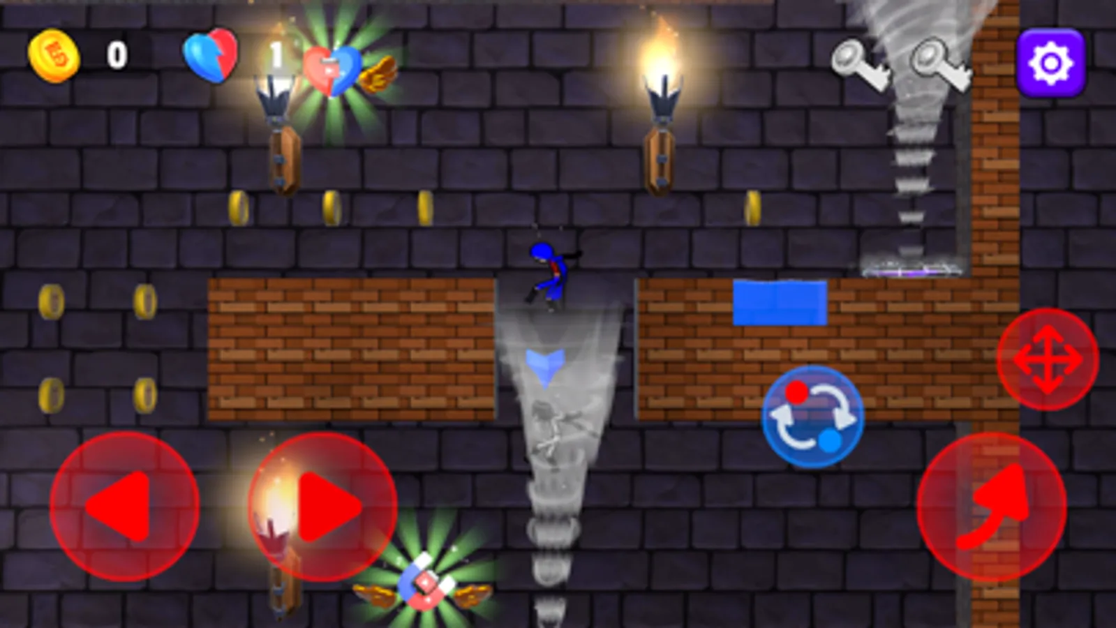 - Just tap the button "Swap" to change from Water blue girl stick to Fire red boy