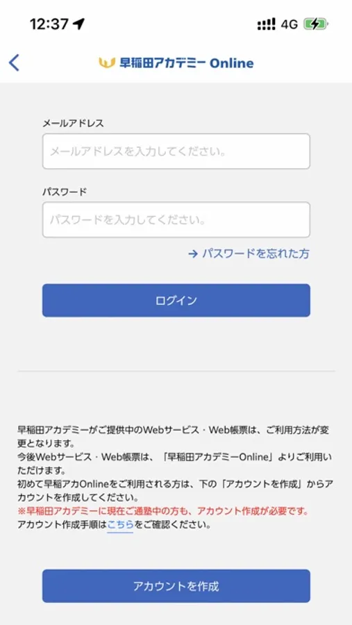 ①早稲田アカデミーオンラインのアカウントを作成します。