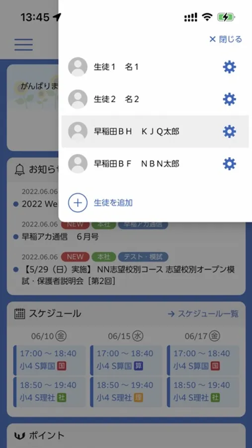 お子様の追加には、早稲田アカデミーの顧客コード・塾生コードが必要です。