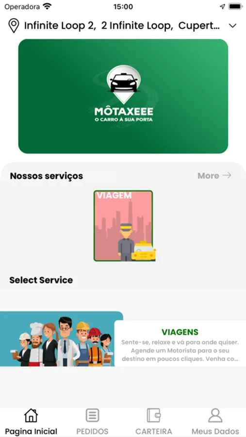Capacidade de Escolha entre Môtaxeee básico, táxi, mudança, autosocorro, VIP limusine, munch.
