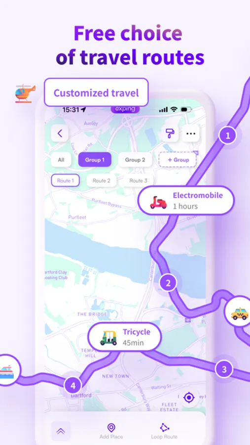 Plan multiple routes within a single map. Seamlessly switch between different modes of transportation and view distances and travel times between any two places. Take control of your journeys and navigate with confidence using our intuitive route planning tools.