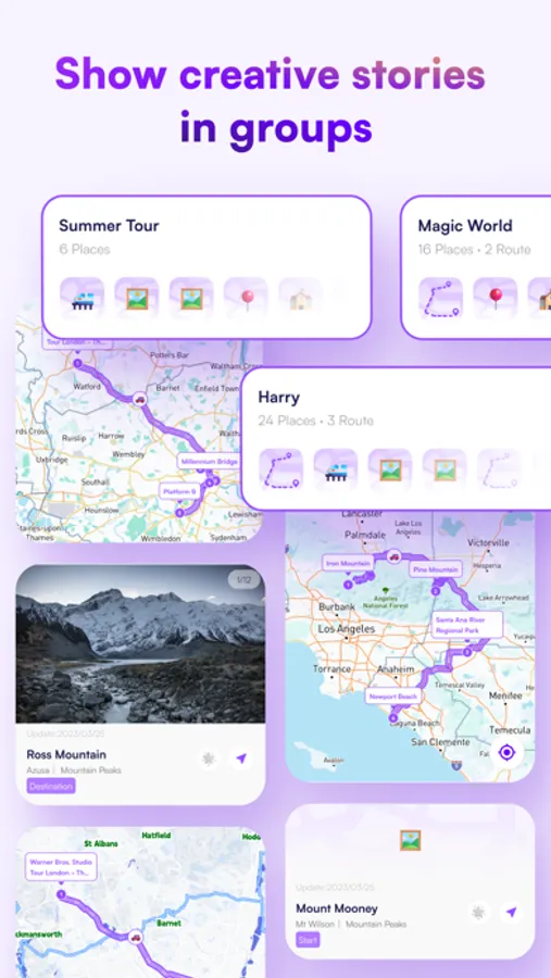 Organize and manage your locations and routes. Create multiple groups within a single map to classify and customize your content. Dive into thematic mapping and create maps that tell captivating stories. Experience rich thematic content creation and take your map customization to new heights.