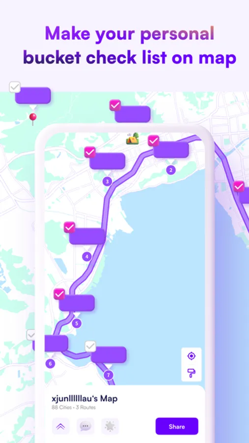 Effortlessly mark any location on the map. Simply search or long-press to drop a pin, and customize it by adding emojis or images. Make your mark memorable by including personalized notes and vibrant tags. Gain multidimensional insights through visual reviews with radar charts, giving your map a dynamic and engaging touch.