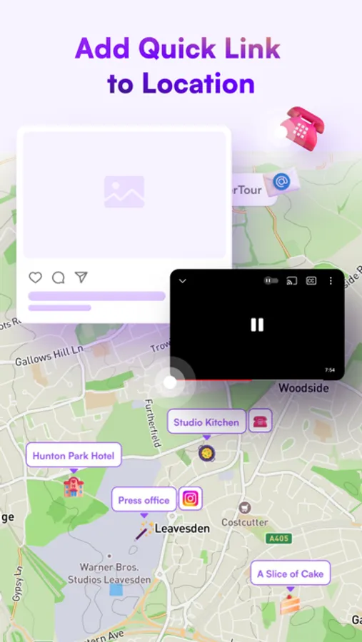 Access essential information with ease. Add links, phone numbers, emails, and text for any location. Streamline your navigation experience with one-click actions, allowing you to quickly dial phone numbers, launch apps, or copy text. Enjoy seamless connectivity and efficient access to important details.