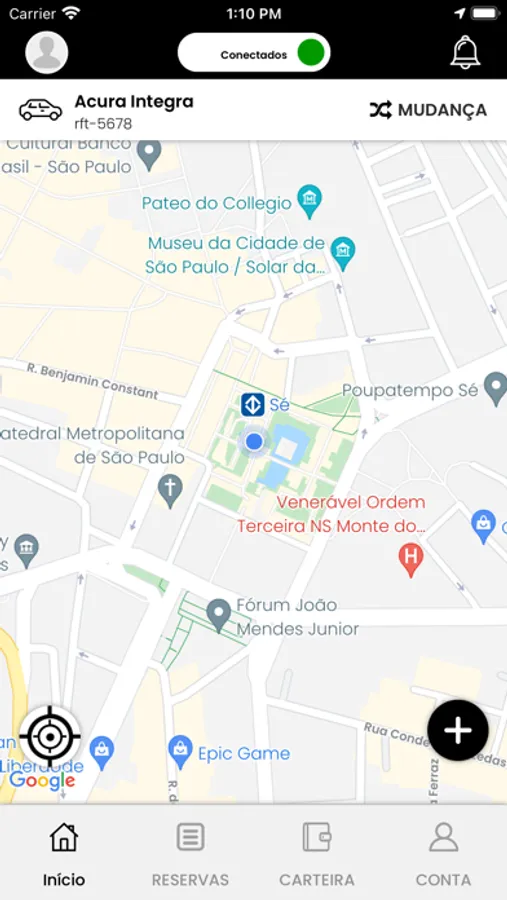 Adicione contatos de emergência e utilize o botão pânico (caso necessite).