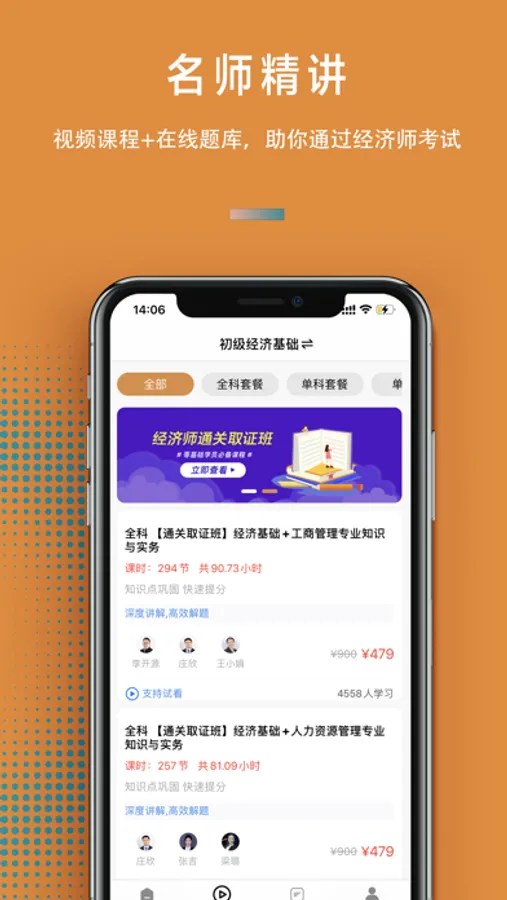 【名师精讲】视频课程+在线题库,助你通过经济师考试;