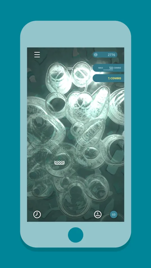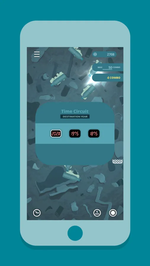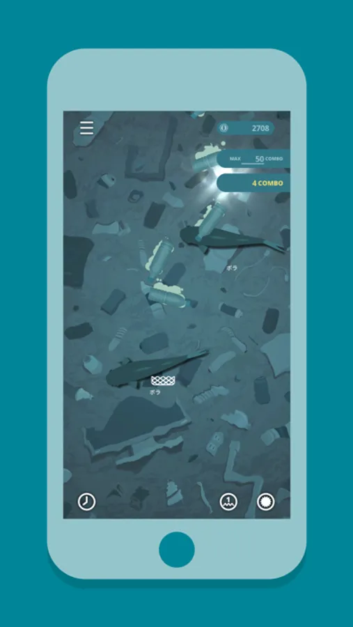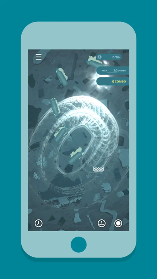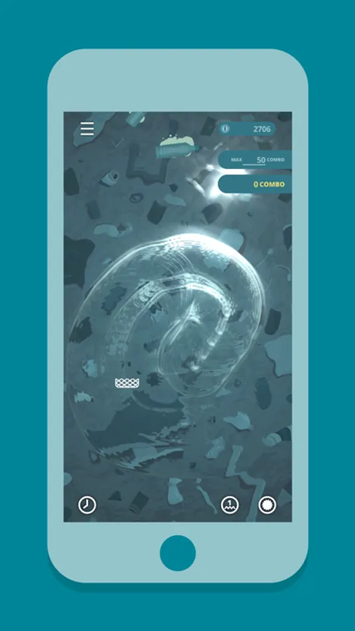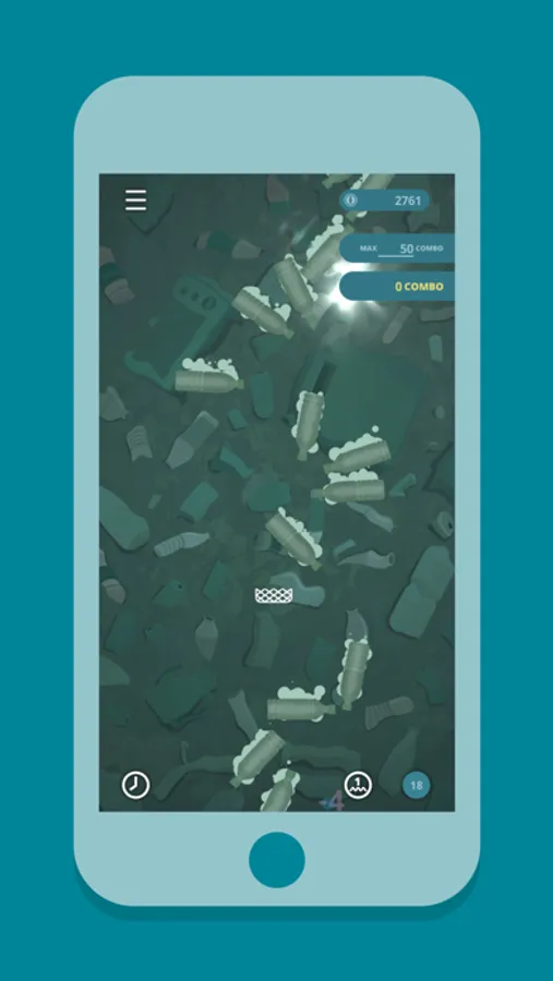 (2) Tap or swipe to create waves to move river litter to the white basket and collect it.