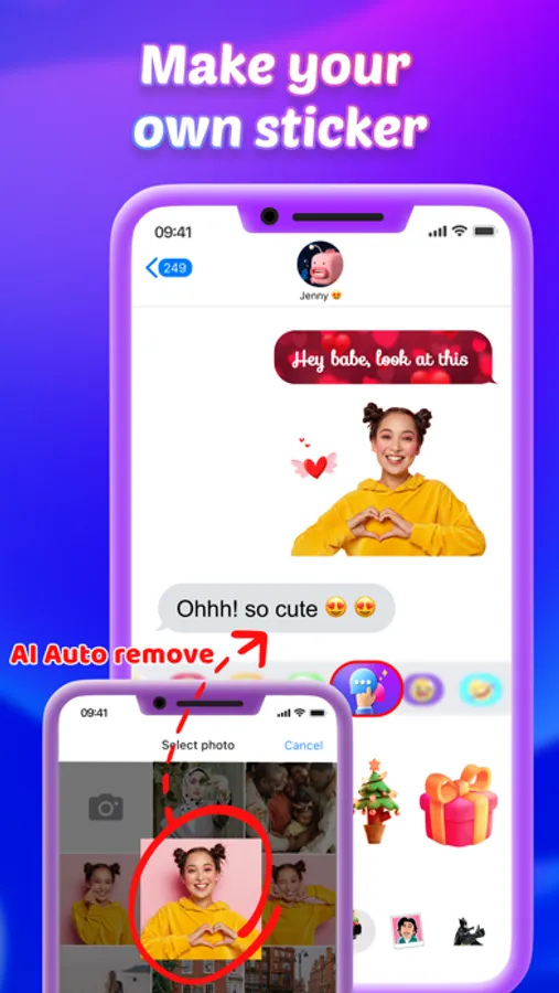 You can turn any photos from your iPhone into stickers within a moment and use the free sticker templates to make various customizations. The app provides an automatic or manual tool to remove the desired portion. You can unleash your sticker creation by adding text, emojis and borders.