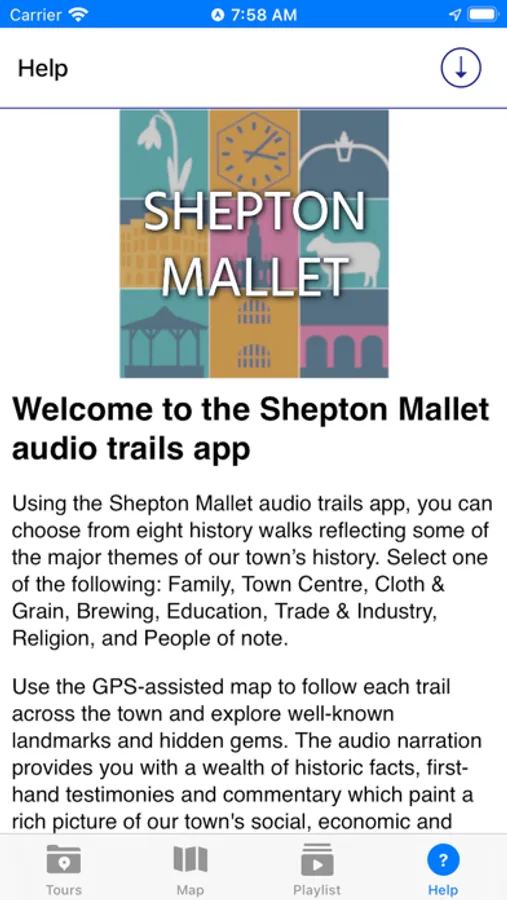 This app was created as the result of a partnership between Shepton Mallet Town Council, the Darshill and Bowlish Conservation Society and the Shepton Mallet Local History Society. The aim of this project is to make Shepton Mallet's history freely accessible to a wide audience, including visitors and local residents.
