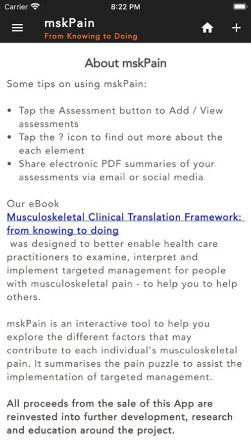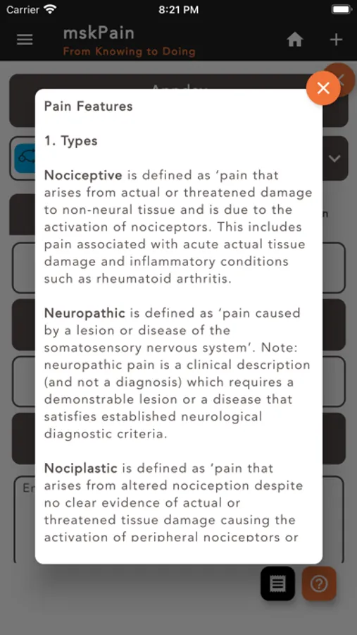 mskPain is an interactive App for identifying different factors that may influence musculoskeletal pain, based on the Musculoskeletal Clinical Translation Framework.