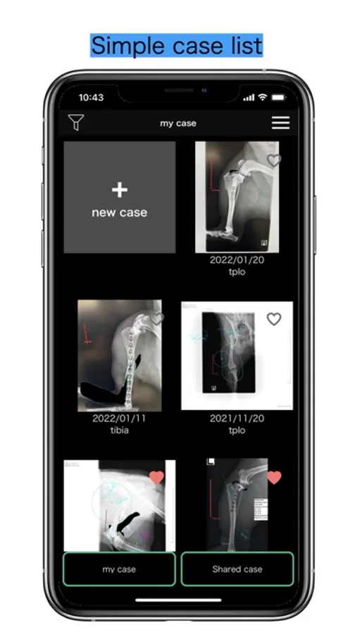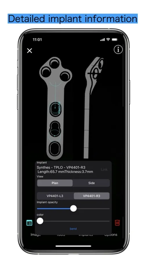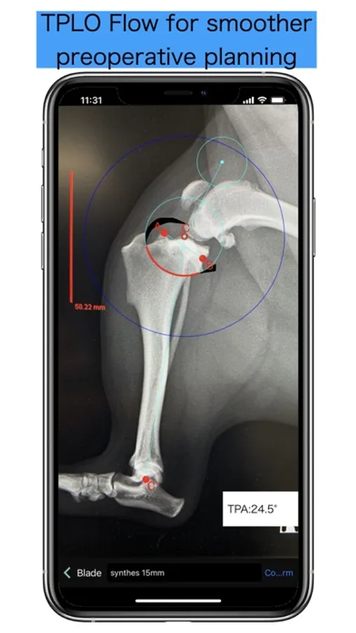 Pre-operative planning using various tools and plates, and explanation of the procedure to the owner, all with a single app.