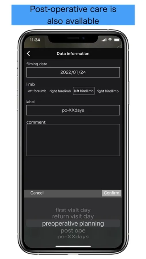 If the date of surgery is registered in the case information, the number of post-operative days will be automatically calculated and displayed when the XX post-operative days are selected with a label.