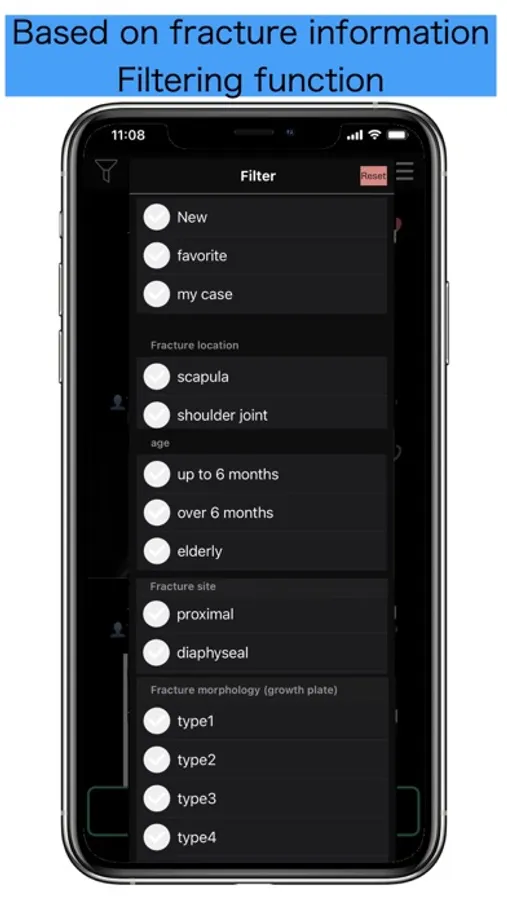 If fracture information is registered at the time of case information registration, it can be later narrowed down and displayed in a list using a filter.