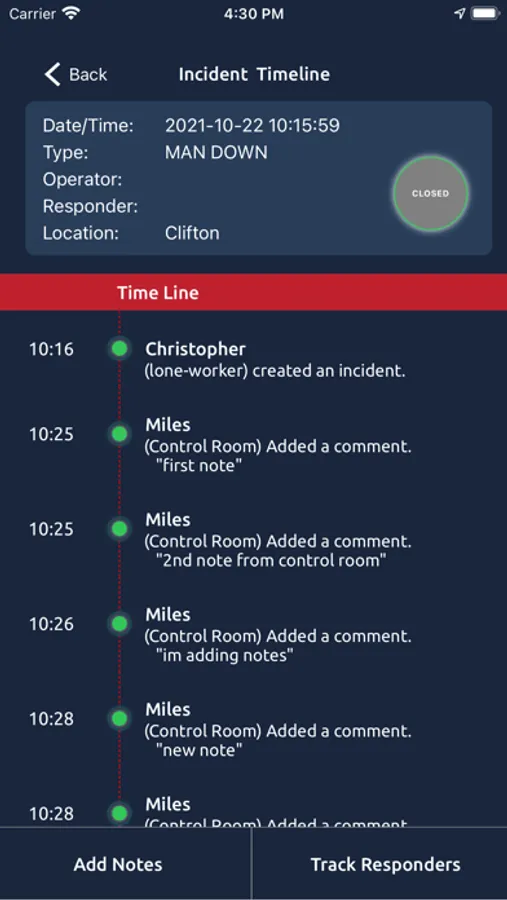 Monitoring lone workers not only enables to check on the status of the lone worker in real time, but they can report if they suspect danger by press Red Alarm which will notify the monitoring station for help and to start audio/video communication and responders will be assigned if needed.