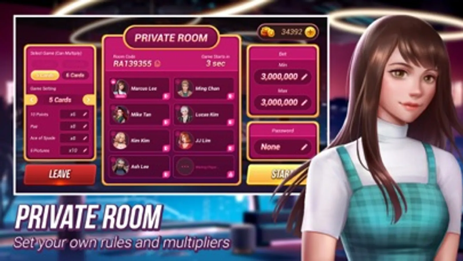 Play Niu-Niu for free and however you want! Join a tournament game or pick from any games that are open to the public in the lobby! 3 or 5 players, fast or slow, join the table with stakes that you want. This game caters to all playing styles and skill levels.