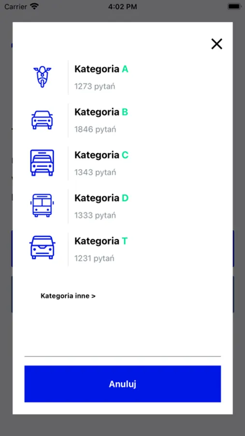 Tryb egzamin - symuluje oficjalny egzamin oraz przedstawia nasz wynik końcowy (pozytywny lub negatywny). W wersji premium możesz rozwiązać nieskończoną ilość egzaminów w niezliczonej ilości kombinacji pytań. Jego sposób wykonania jest identyczny jak na egzaminie.