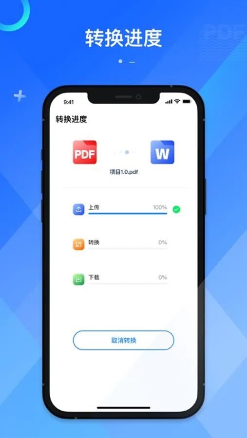 PDF转换器是一款支持手机文档格式转换的软件,主要功能为PDF和其他格式之间的互相转换;