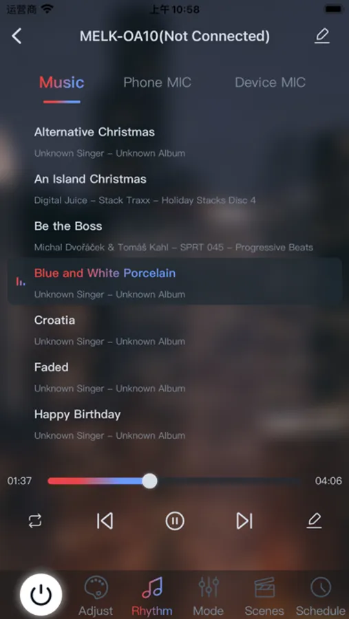 It's has 3-way to rhythm, playing local music (file) of smartphone, picking-up sound by the phone's MIC or the MIC on device.