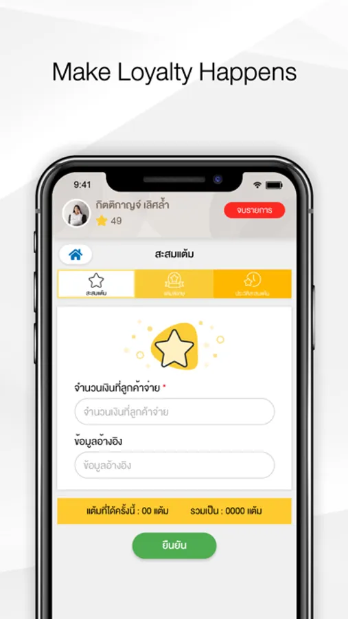 -สะสมแต้ม : ฟังก์ชั่นการบันทึกข้อมูลการใช้จ่ายของลูกค้าของร้านพร้อมระบบการคำนวณจำนวนแต้มสะสมจากยอดค่าใช้จ่าย