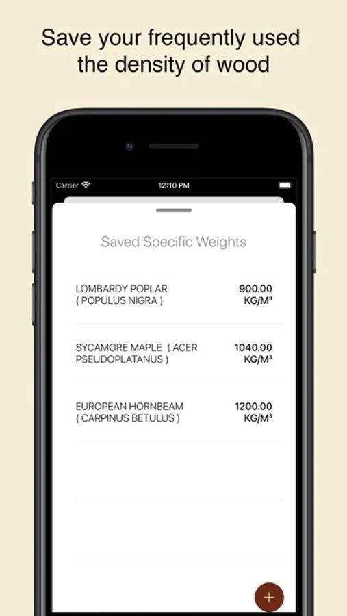 - Set imperial/metric units ( Lb, Ft, In, Lb/Ft³ or Kg, M, Cm, Kg/M³ )