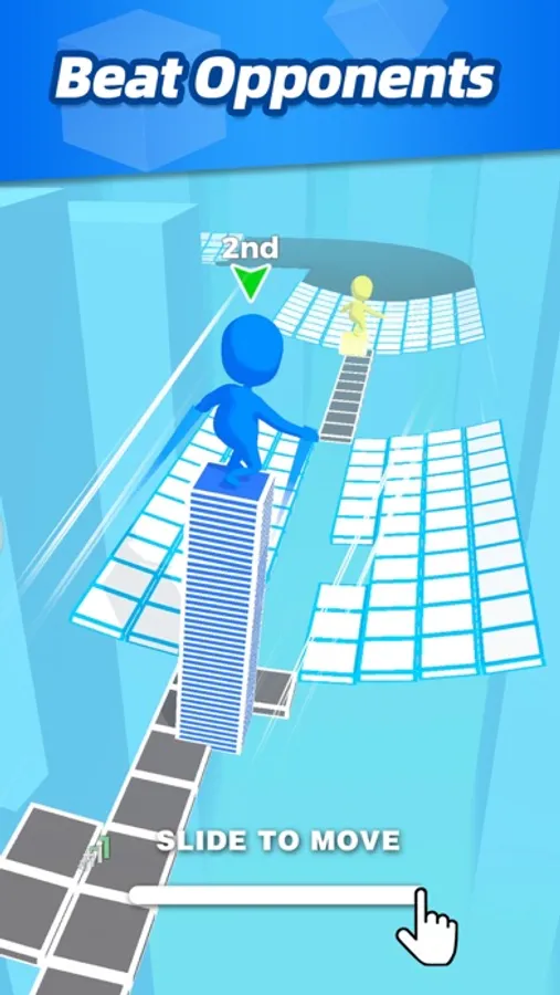 Collect and stack up all the blocks around you. The more blocks you have collected, the faster you will be. Collect as many blocks as you can and beat all the opponents.