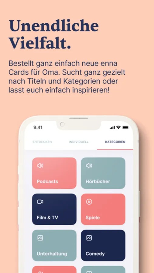 Die enna App läuft auf den Smartphones der Angehörigen und ist die digitale Brücke zu Oma und Opa. In der App können gemeinsame Momente geteilt, Videoanrufe gestartet oder Termine geplant werden. Gleichzeitig kann aber auch neuer Content für Oma und Opa in unserem enna store bestellt werden. Die Karte wird gedruckt und direkt per Post verschickt.