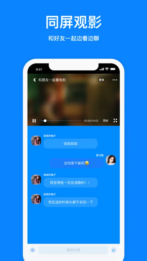 *同屏观影!和好友开一个电影聊天室,一起享受边看电影边互动的轻松时刻,当然你要是觉得两个人还不够让你满意的话。直接拉群看,全班同学可以一起看哦!