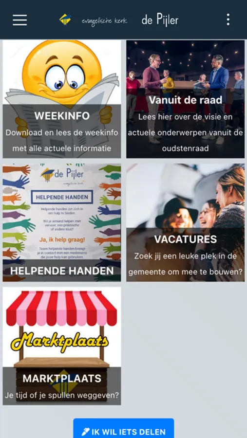 De Pijler app is een persoonlijke kerkomgeving voor leden. Met deze app kunnen gemeenteleden berichten met elkaar delen en hun persoonlijke gegevens aanpassen. Ben je ingedeeld in een groep of bediening, dan kan je gegevens uitwisselen in een groepsomgeving.