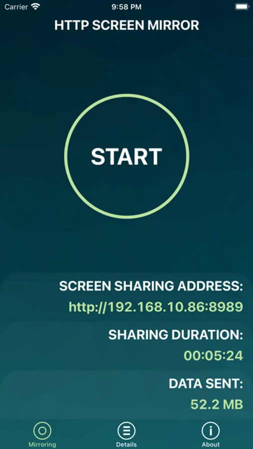 Http Screen Mirror allows to share the screen from your iPhone to any other device connected to the same local network. You can share your iPhone screen to any device that has a web browser. Screen is mirrored through HTTP protocol directly to the other device on your Wi-Fi network and internet connection is not required. You can share the screen from your iPhone to your computer, another iPhone, Smart TV, or any other device which has a web browser.