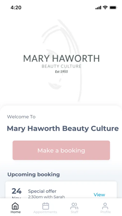 The Mary Haworth Beauty Culture app makes booking your appointments and managing your loyalty points even easier. You're just a few taps away from feeling good and looking great!