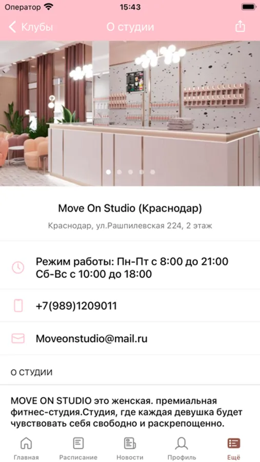 С помощью приложения вы можете следить за новостями, расписанием студии Move On, оперативно получать информацию об изменениях в расписании и специальных предложениях.