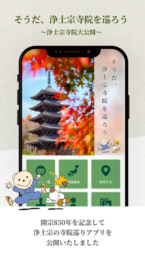 そこで一般の方にも気軽に浄土宗寺院に足を運んでいただけるよう、スマホによる寺院巡り専用アプリを開発いたしました。
