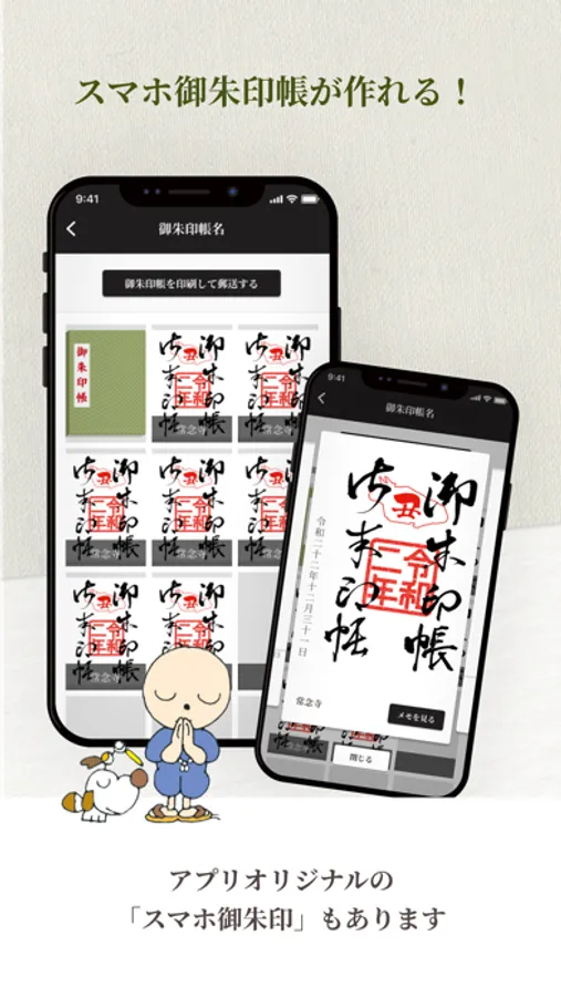 アプリ内だけの特別な御朱印として「デジタル御朱印」を購入することが可能です。御朱印は寺院に参拝した証ですので、アプリで参拝の記録をすることでデジタル御朱印を購入できるようになります。