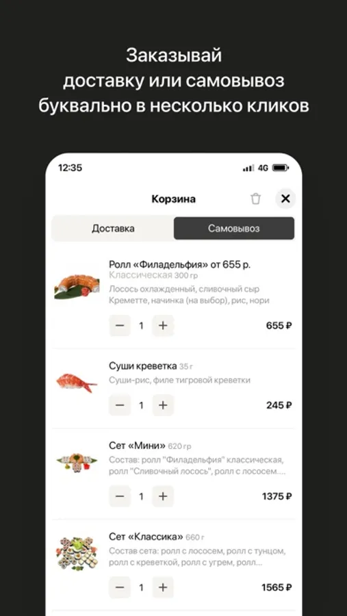 — Быстрый заказ с мгновенным подтверждением через приложение.